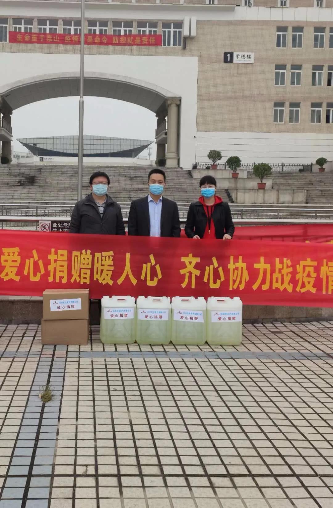 不忘初心,心系母校,2020年3月24日鄭州西電電氣有限公司總經理張杰蘭攜公司員工為汝州市第 一高中、汝州市第 二高中、鄭州市鄭中國際學 校送去了口罩、消毒水以及消毒洗手液等愛心抗疫物資。