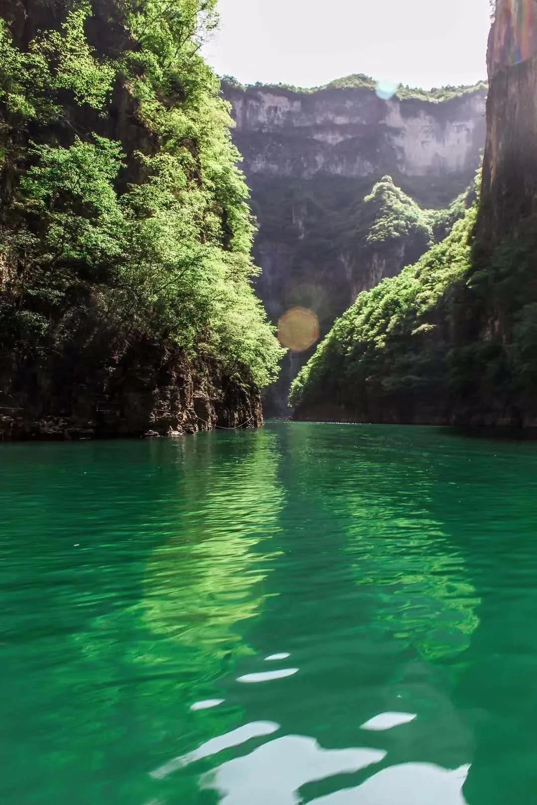 22日上午我們迎著艷陽(yáng)來(lái)到了紅豆杉大峽谷,要進(jìn)入峽谷之前首先要爬近乎于180度的山階登頂,途經(jīng)龍峽湖再乘坐游艇前往大峽谷。龍峽湖湖水和山緊密相連,湖貼著山,山摟著湖,碧綠的湖水深不見(jiàn)底,青山綠水常見(jiàn),但是如此碧綠的水真的是第 一次見(jiàn)到,此情此景仿佛只有在電影里才可以感受到。