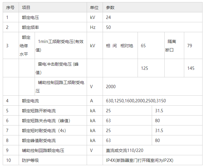 適用于三相交流額定電壓24KV,額定頻率50HZ單母線、單母線分斷及雙母線電力系統,用于接受和分配電能并對電路實行控制、保護及監測。