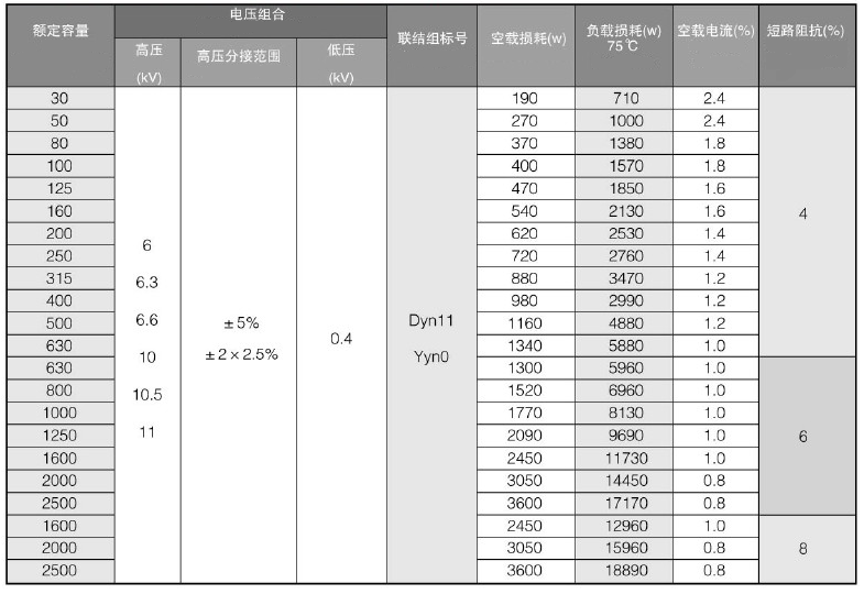 高可靠性,很好的抗短路能力和20%的長期過載能力。特別適合于對供電可靠性要求較高的場合,如醫院、礦山、工廠等。
